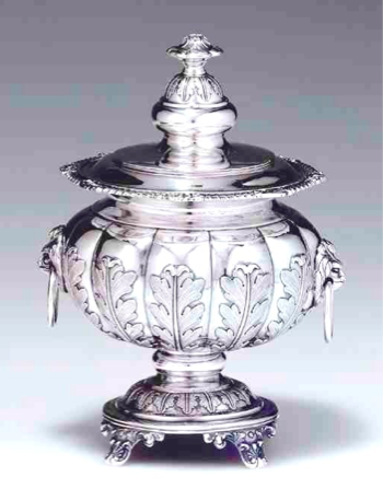 At the time this urn was made, the Emperor Dao-guang [Taou-Kwang] was on the Imperial throne and China was in political turmoil. The first Opium War was about to be waged and not long afterwards was to follow the Taiping Rebellion. Trade in Canton continued, albeit sometimes under duress, while foreign merchants were tasked with executing special orders from Canton silversmiths to produce high quality items to rival those being made in London, Boston and New York but at a fraction of the cost of producing them in those cities. Foreign trade was strictly contained with an area less than half a square mile.