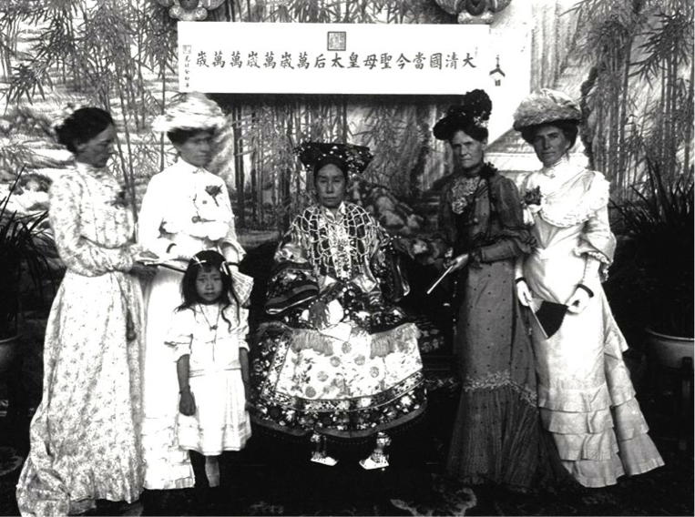 The extraordinary sight of wives of the American legation in Beijing with the Empress Dowager Cixi, Sarah Conger, wife of the American minister to China holding Cixi’s hand. Previously, women not of the Imperial family or their consorts were forbidden to enter the Forbidden City, let alone foreign women!
