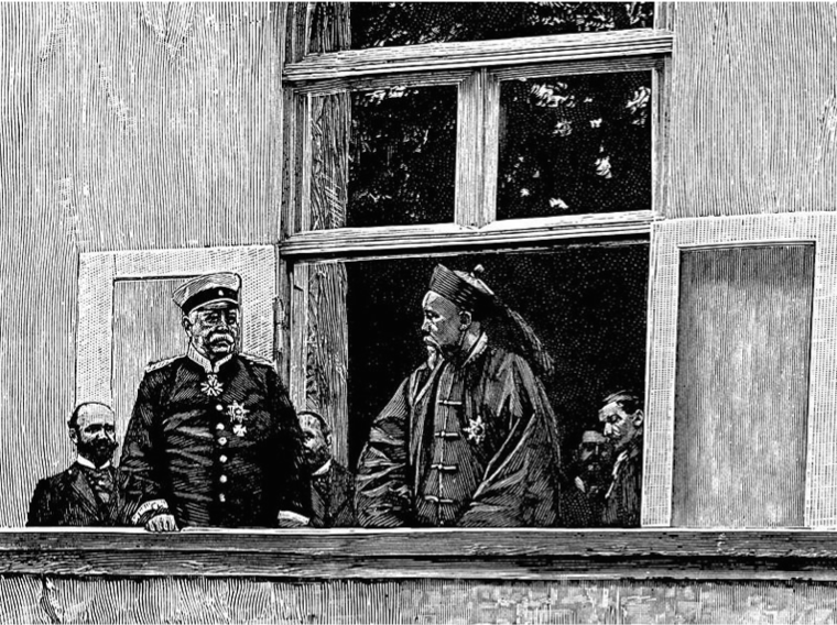 Li Hongzhang with Otto von Bismarck in Friedrichsruh, the Bismarck Manor House in the Sachenswald Forest, Northern Germany, 1896