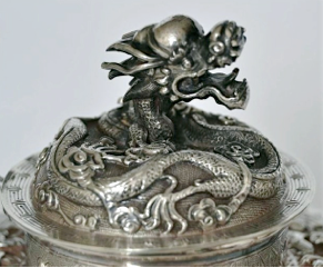 Tu Mao Hsing, for me, was the master of dragon-making. His silver dragons were quite extraordinary, once again in varying degrees but all degrees of excellence – so much so that I personally believe he was a supplier of component dragons to many makers across China. I also believe that certain makers probably ordered their own exclusive versions. This was common practice among Western silversmiths of the Georgian period in the making of both jewellery and high quality silver objects, where die striking and other “mass production” techniques were prevalent from the latter part of the 18th century.