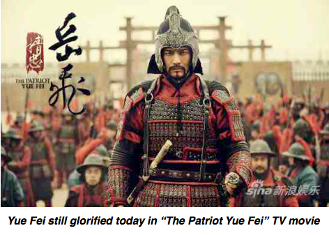 On the left we have one of the battle scenes from the teapot. Three pennants are being carried by riders, one signifying “Commander-in-Chief”, another “Yue” and the third “Yang”. The Yang in this instance and in the context of this particular battle refers to General Yang Zai Xing; the Yue refers to Yu Fei’s son Yue Yun.