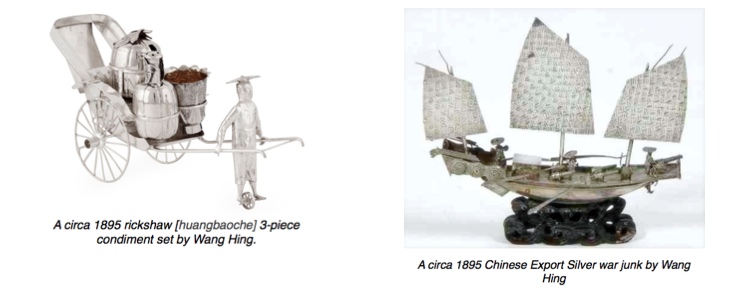 Chinese Export Silver has many quirky oddities; miniatures is one of them. Although silver miniatures are not particularly unique, the Chinese silversmiths generally tended to follow four main themes: rickshaws, sedans, pagodas and junks, of which the two items featured below are typical examples.