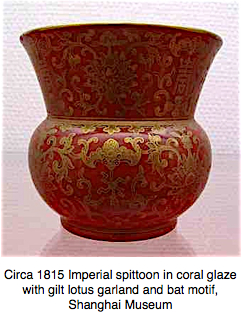 A spittoon, by default, has to imply spitting. The roots of the custom of spitting and the use of a spittoon [cuspidor**] in China is somewhat diverse and confusing. While some point to the custom of betel nut chewing requiring the need for a spittoon, that gives no obvious logical reason why a spittoon was considered an essential part of a wedding dowry [or am I missing something here!].