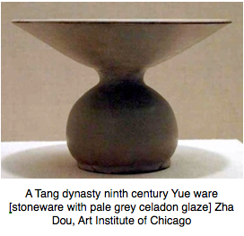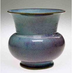 A Ch’un ware glazed spittoon from Honan Province – wares of this sort [right] were made for use by the last Northern Song [Sung] emperor [who reigned from 1101-1125], but some authorities believe that this particular vessel and others like it [in the National Palace Museum, Taipei] were also made during the Ming Dynasty [14th century].