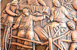 The same workshop had a foundry that was also used for creating bronze statuary [left] and beaten copper panels with elaborate repoussé designs – again very much in the Arts and Crafts tradition [below]. It also made bells for churches.