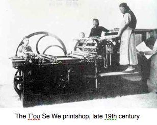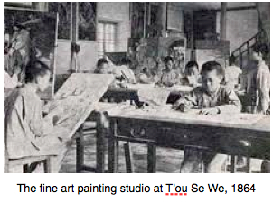 ts activities and extending the workshops and artisanal skills. Juan Ferrer died a premature death in 1856. Other professors and artists at the orphanage included Brother Nicolas Massa [1815-1870] who taught oil painting, Brother Lu Baidu [1836-1880], Brother Adolphe Vasseur [1828-1899], and, most notably, Brother Liu Bizhen [1845-1912], all of whom were highly woodcut engravers who produced work for evangelical publications – T’ou Se We students would often colour the prints, many of them woodcuts of the Evangelicae Historiae Imagines. T’ou Se We expanded its printing into photoengravure and in the early 1900’s, Wenming, the largest Chinese publishing house began using T’ou Se We prints in its text books.