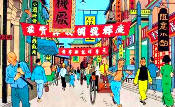 One of the most famous students of this workshop was the painter and sculptor Zhang Chongren and he unwittingly created probably the most bizarre link with T After Zhang had completed his training at T’ou-Sè  it later led him to study art in Brussels, where he met Hergé [Georges Remi], the creator of the comic book character Tintin. Based in Shanghai, the Tintin adventure, The Blue Lotus , was created in close collaboration with Zhang Chongren, who is immortalized in the figure of the Chinese boy Zhang.