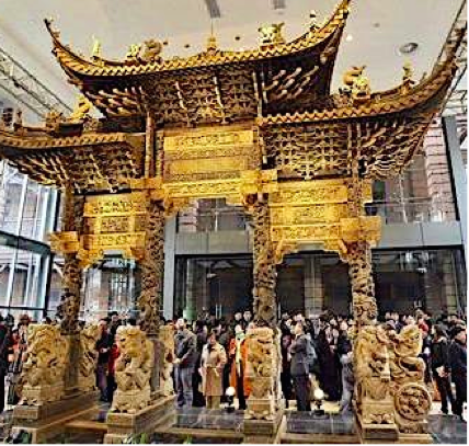 The archway [below] was created in 1912 at the orphanage and was first used in the 1915 San Francisco exposition, was used a second time at the 1933 Chicago World Fair and then at the New York World Fair in 1939. It then went to Indiana University and eventually found its way to Sweden. It now forms the centrepiece of the T’ou Se We Museum in Shanghai.