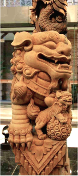 Magnificent carved Fu Dogs form the base of each of the four columns to the archway. It is hard to imagine how students so young could produce work so intricate and of such superb quality.