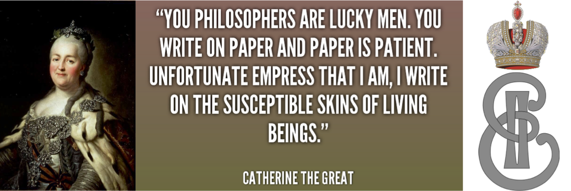 Catherine the Great could never be called a simple girl; to do so would be a gross understatement of the reality that was this supremely extrovert empress. Here we see her inaugurating the new Imperial Academy of Art in 1765 at the Shuvalov Palace in St Petersburg; just another day at the office for her Imperial Highness.